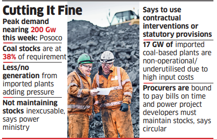Coal Power Ministry Asks States To Act Against Non Supplying Imported Coal Based Plants The Economic Times